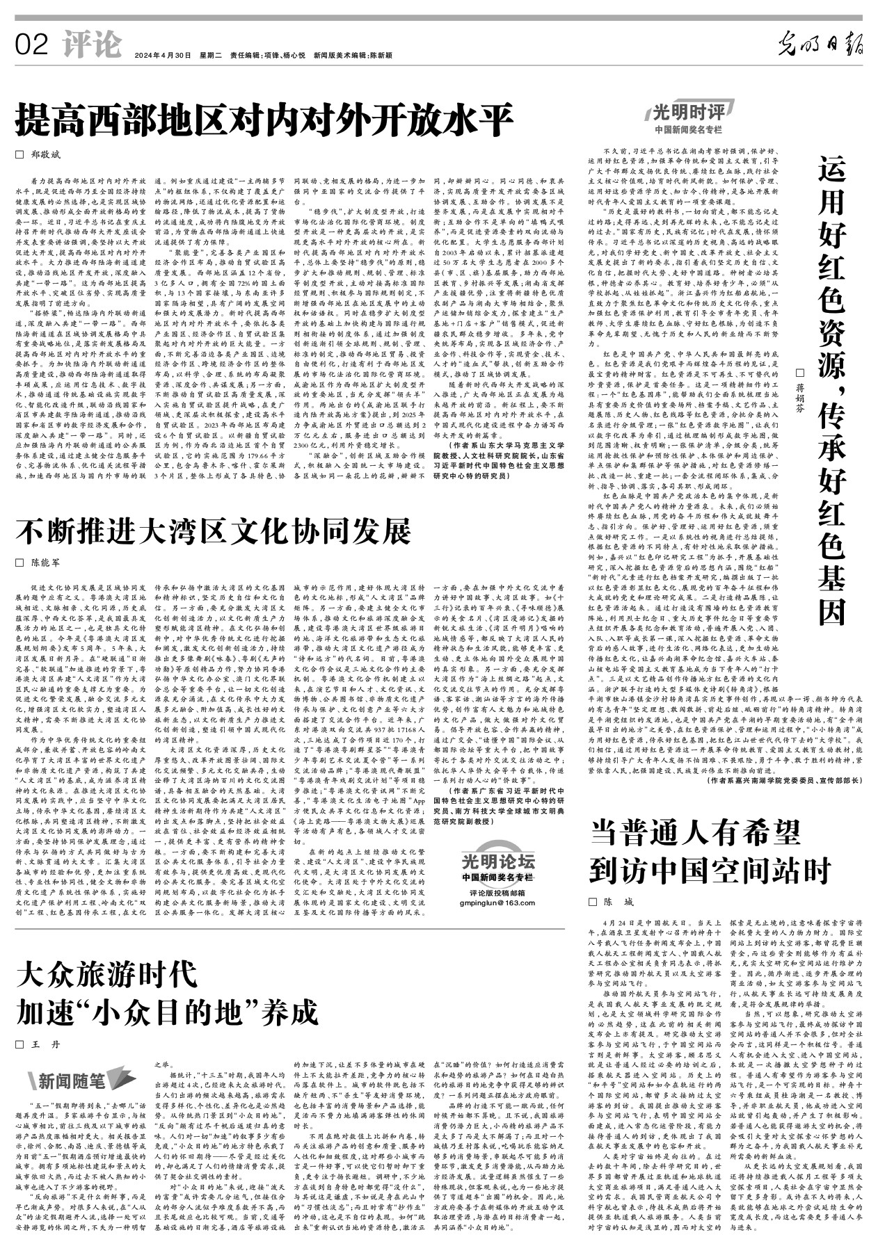 4月30日,《光明日报》发表人文社科研究院院长郑敬斌教授文章《提高西部地区对内对外开放水平》。文章指出,着力提高西部地区对内对外开放水平,既是促进西部乃至全国经济持续健康发展的必然选择,也是实现区域协调发展、推动形成全面开放新格局的重要一环。“搭桥梁”,畅达陆海内外联动新通道,深度融入共建“一带一路”;“聚能量”,完善各类产业园区和经济合作区布局,推动自贸试验区高质量发展;“稳步伐”,扩大制度型开放,打造市场化法治化国际化营商环境;“深融合”,创新区域互助合作模式,积极融入全国统一大市场建设。新征程上,要不断提高西部地区对内对外开放水平,在中国式现代化建设进程中奋力谱写西部大开发的新篇章。