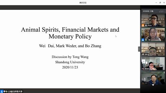 11月23日上午,山东大学人文社会科学青年学者学术沙龙暨经济学院第7期宏观经济与金融论坛通过在线会议方式举行。山东大学经济学院院长助理汤玉刚教授、武汉大学经济与管理学院刘岩副教授、上海财经大学公共经济与管理学院郭长林副教授、山东大学经济研究院陈言副教授、西南财经大学中国金融研究中心张博副教授、厦门大学王亚南经济研究院、经济学院薛涧坡教授、山东大学经济学院王曈副教授先后发言。经济学院教师张博、黄继雷、陈韵旻、张仁斌、尹鹏辉等参加会议并开展研讨。汤玉刚代表学院致辞,并介绍了经济学院当前发展现状。沙龙活动由经济学院金融系姜明明副教授主持。