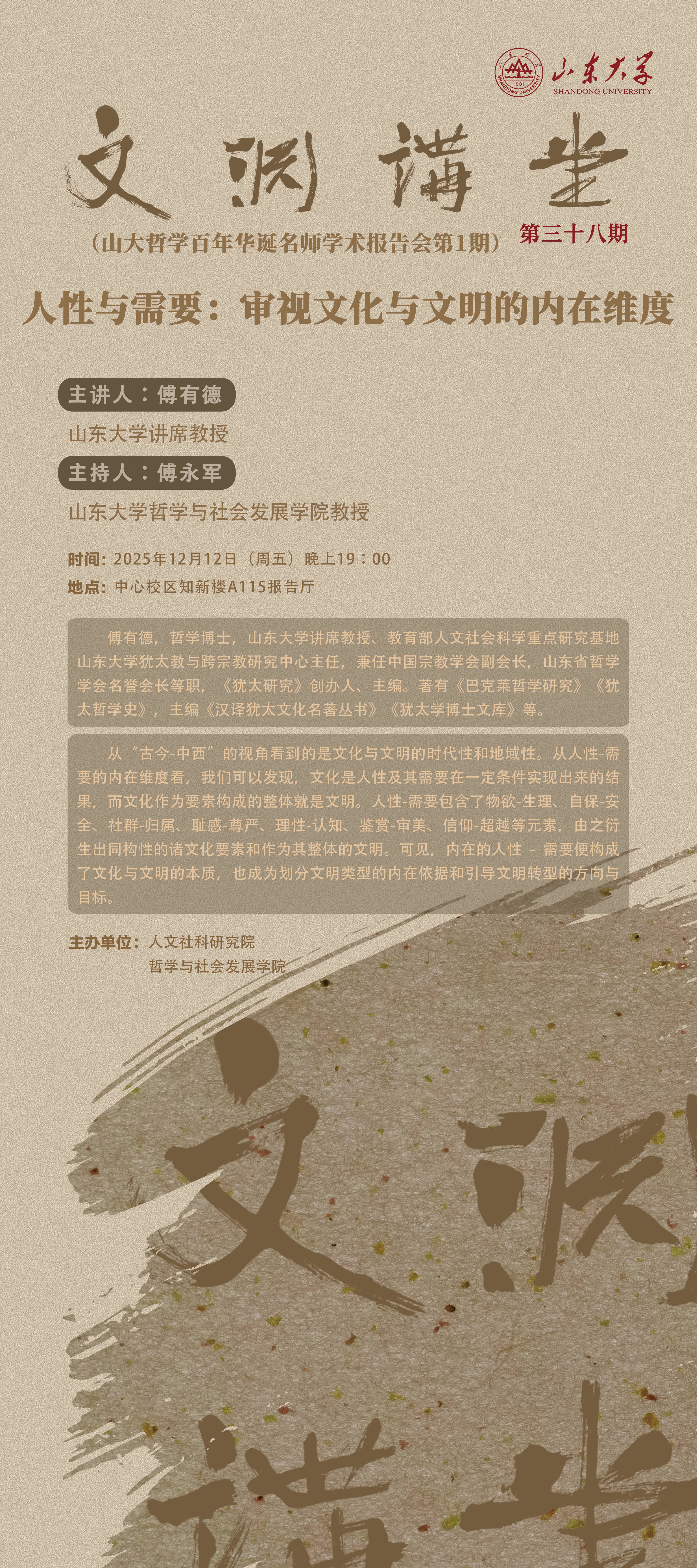 山东大学文渊讲堂第38期:人性与需要:审视文化与文明的内在维度