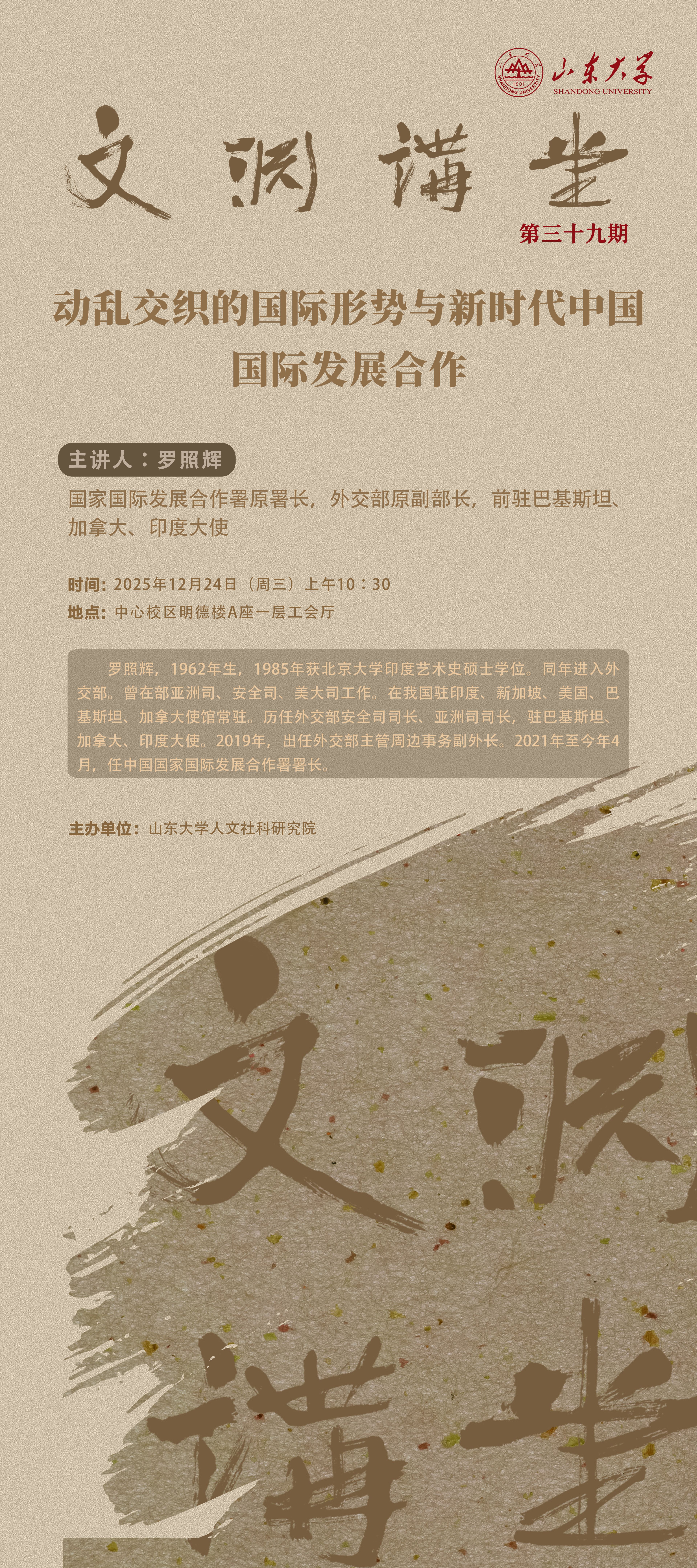 山东大学文渊讲堂第39期:动乱交织的国际形势与新时代中国国际发展合作