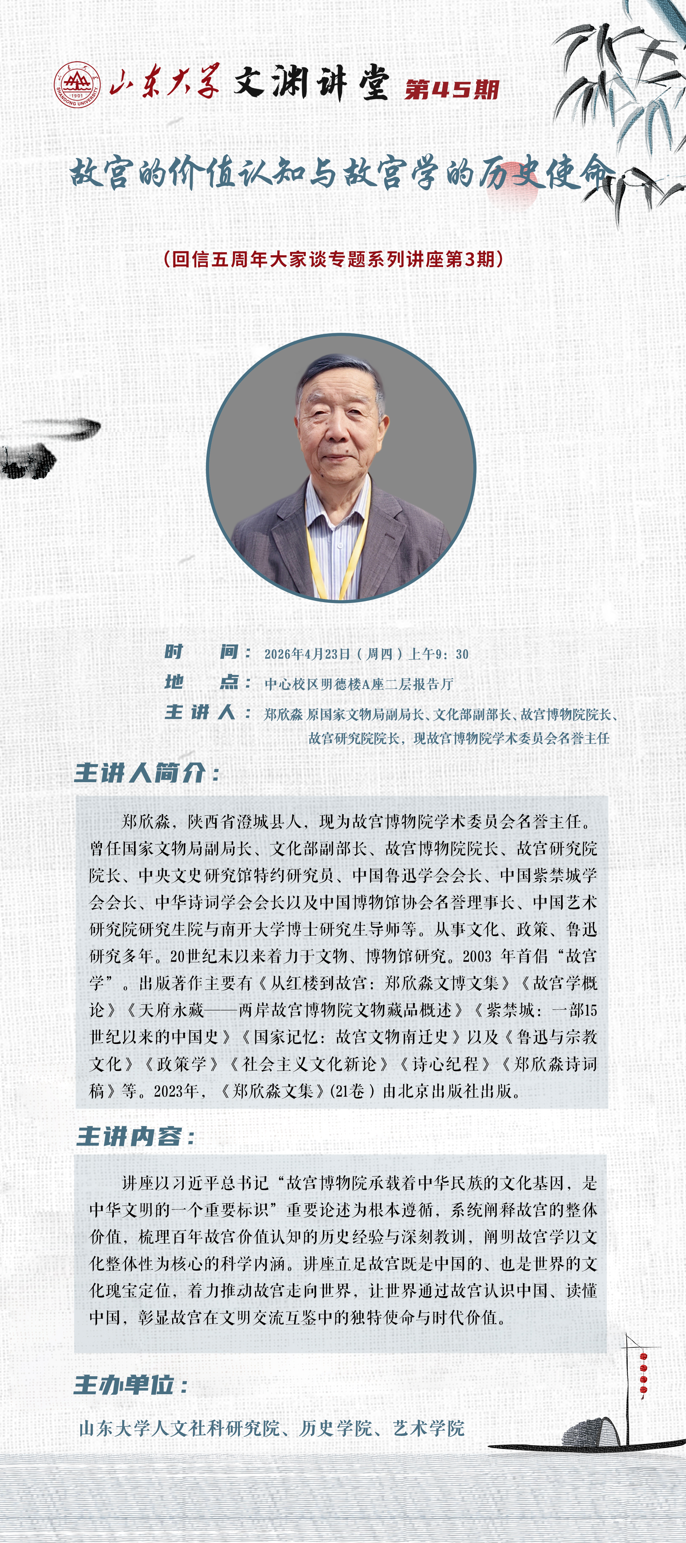 山东大学文渊讲堂第45期:故宫的价值认知与故宫学的历史使命 (回信五周年大家谈专题系列讲座第3期)