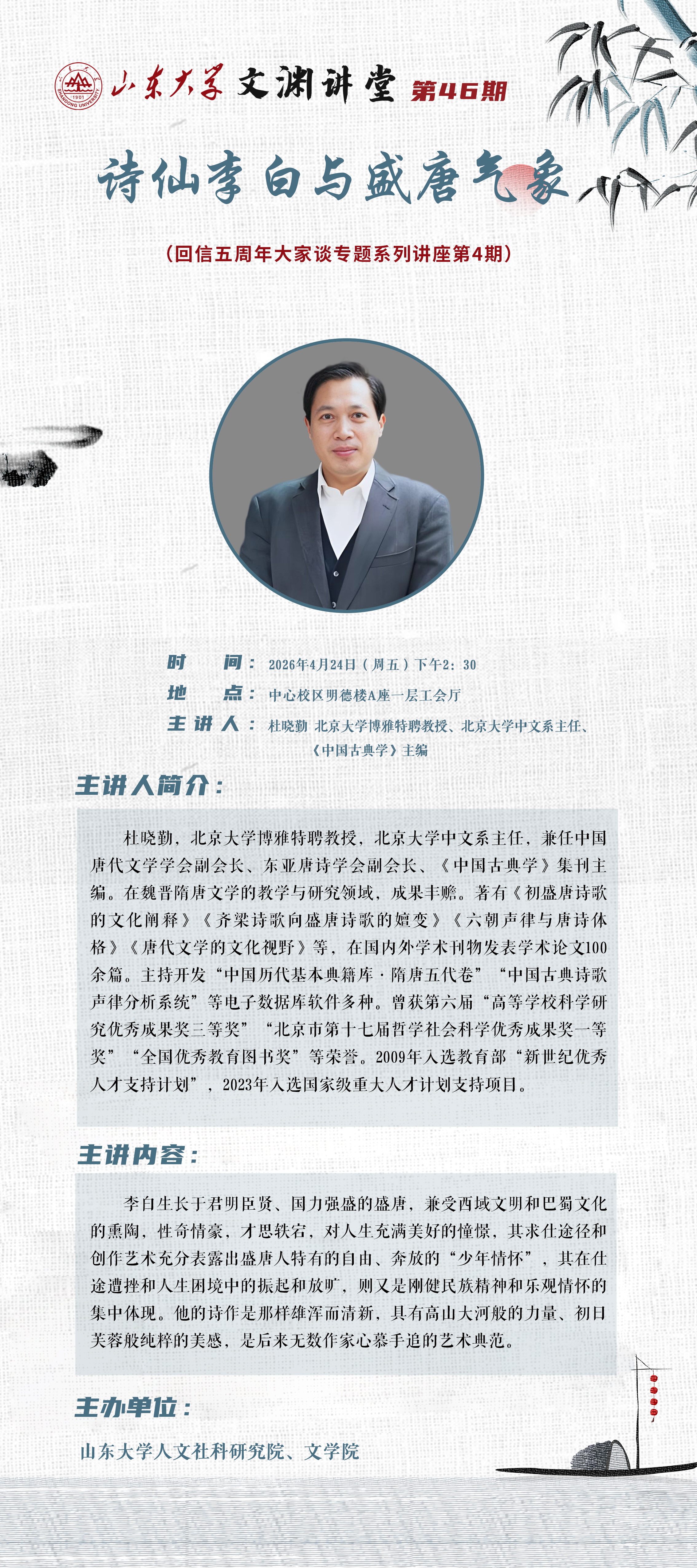 山东大学文渊讲堂第46期:诗仙李白与盛唐气象 (回信五周年大家谈专题系列讲座第4期)
