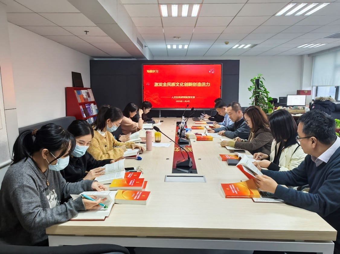 会议集中学习《激发全民族文化创新创造活力》一文,明确了文化繁荣兴盛是中国式现代化的重要标志,认识到高校党员应做好“两个结合”,在国际文化交流和软实力竞争中,不断增强中国文化竞争力与影响力,在信息技术发展浪潮中,营造开放发展生态,形成包容的文化格局和文化气象。