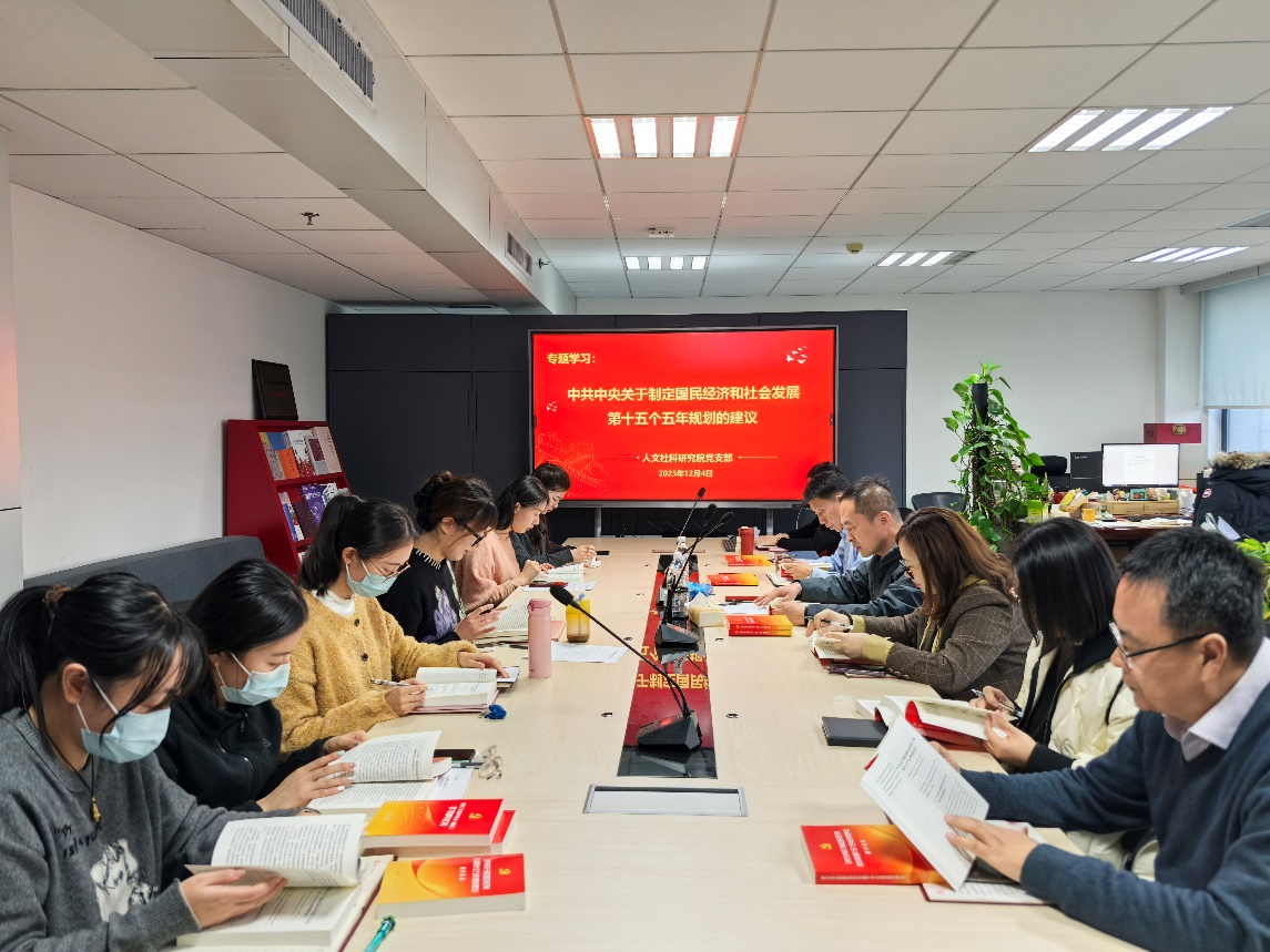 12月4日下午,人文社科研究院党支部组织党员参加2025年下半年党员基本培训第二次集中大课,观看南方科技大学校长、中国科学院院士薛其坤“追求卓越 矢志报国——在新征程上践行共产党员的初心与使命”专题辅导报告,集体学习《党的二十届四中全会<建议>学习辅导百问》中的《激发全民族文化创新创造活力》和《中共中央关于制定国民经济和社会发展第十五个五年规划的建议》。